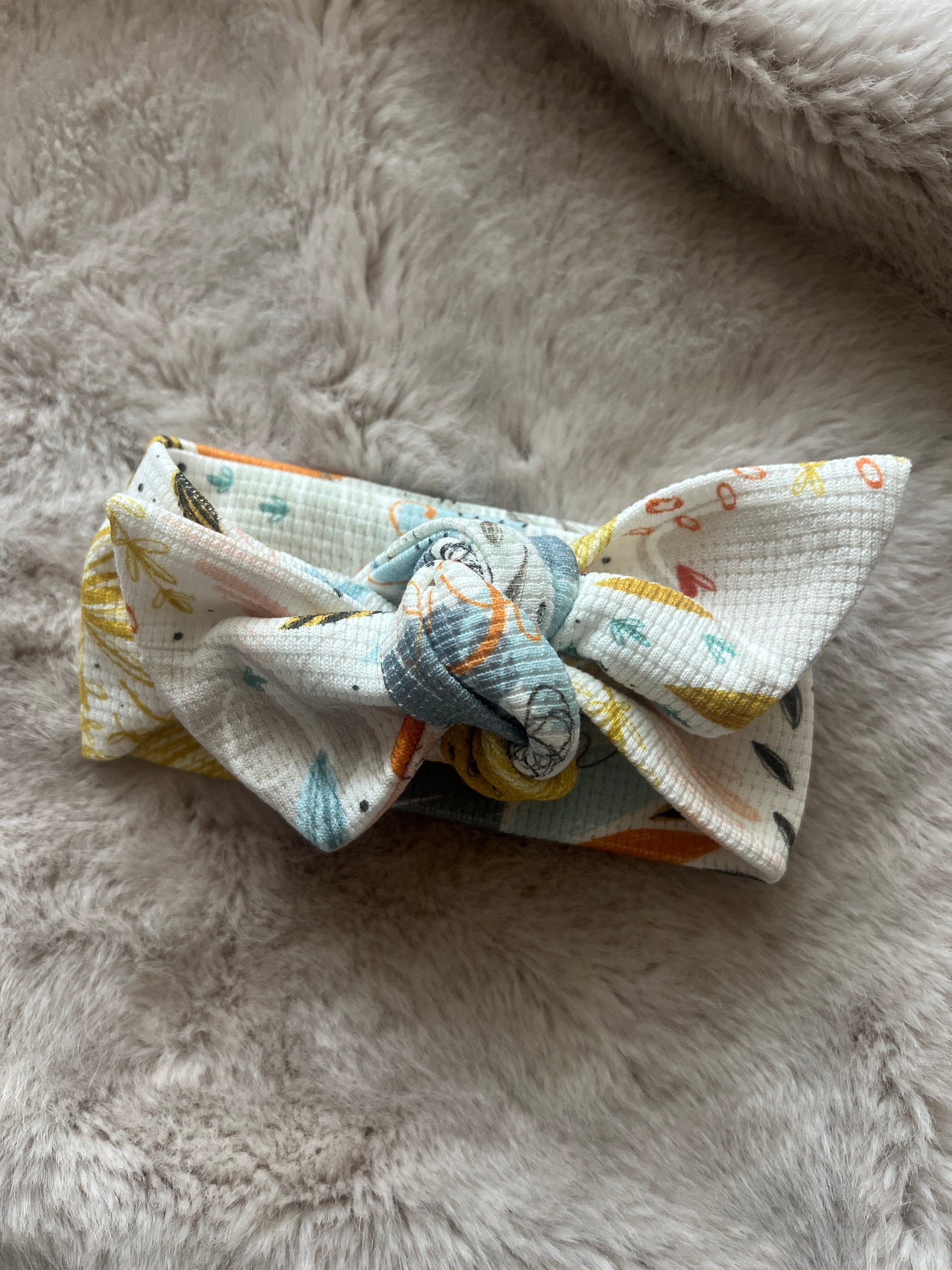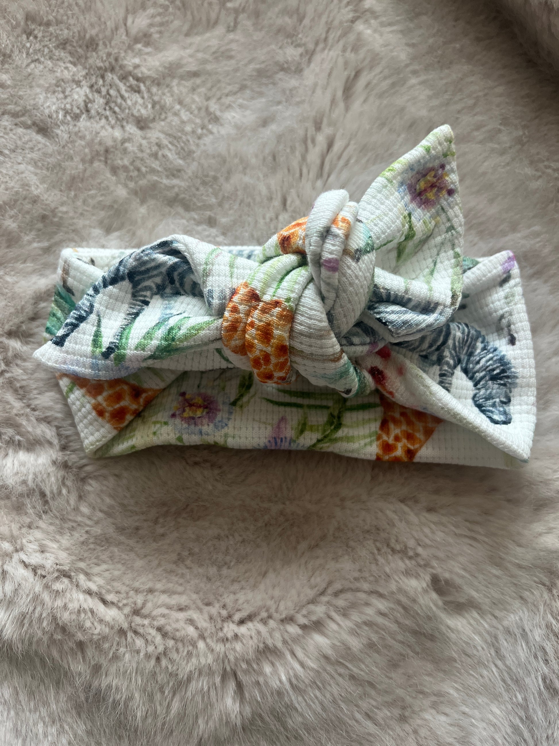- Taglia unica regolabile: dalla nascita fino a quando la bimba cresce, grazie al nodo che si può adattare facilmente sulla testa.